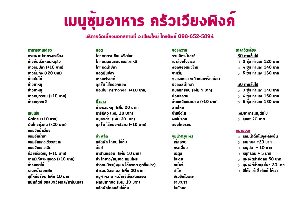 เริ่มต้นที่ 120 บาท อาหารหลากหลาย เช่น ก๋วยเตี๋ยว ส้มตำ และอื่นๆ