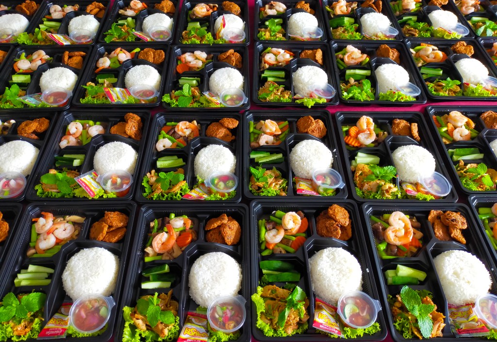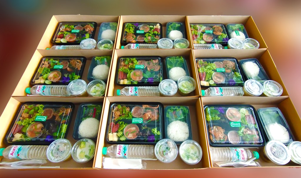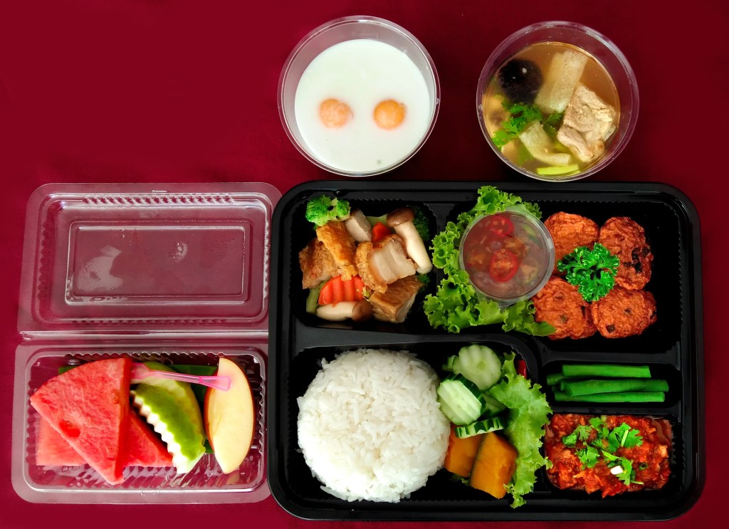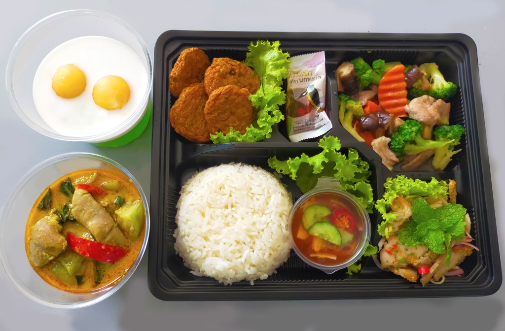 พร้อมช้อนส้อมทิชชู บรรจุลงในกล่องลูกฟูกขนาดใหญ่เพื่อความสวยงาม เหมาะสำหรับถวายพระสงฆ์ หรือจัดเลี้ยงแก่แขกวีไอพี และผู้ทรงคุณวุฒิ